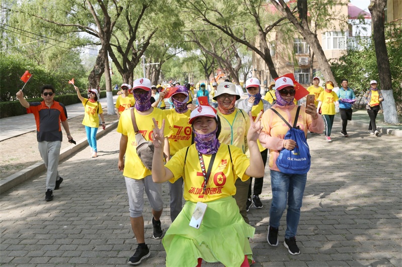 早上7時,市人民廣場人頭攢動,彩旗飄飄。哈三聯(lián)員工集結(jié)完畢,統(tǒng)一裝備,活力四射,整裝待發(fā)。