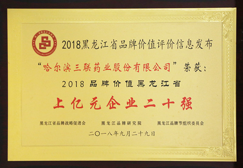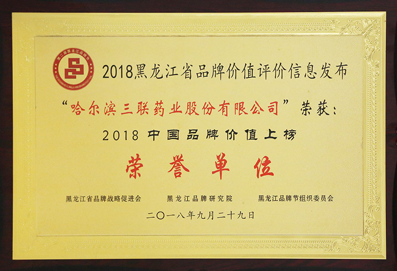 哈三聯榮獲“2018中國品牌價值上榜榮譽單位”和“2018品牌價值黑龍江省上億元企業二十強”稱號