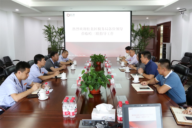 8月26日下午,松北區稅務局張健民局長、楊曉東副局長、杜洪濤科長、苗立宇科長一行蒞臨公司調研指導,此次調研是哈爾濱新區(松北區)正式對利民開發區實施管理以來,稅務局相關領導首次到訪公司,哈三聯董事長兼總經理秦劍飛先生高度重視,委派副總經理梁延飛、副總經理韓冰等領導對張局長一行進行了熱情接待,并對公司的發展歷程及上半年生產經營情況進行了詳細匯報。