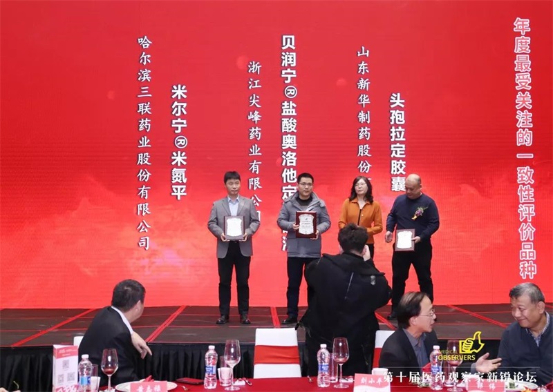 12月3日,由醫藥觀察家報社和全國醫藥精英俱樂部主辦的第十屆醫藥觀察家新銳論壇、全國醫藥精英俱樂部年會暨2019年度中國醫藥新銳榜頒獎典禮,在重慶解放碑威斯汀大酒店隆重舉行。會上,2019年度中國醫藥新銳榜發布,哈三聯副總經理梁延飛先生被授予2019年度醫藥營銷精英人物稱號,公司產品米氮平片榮獲2019年度最受關注的一致性評價品種獎。