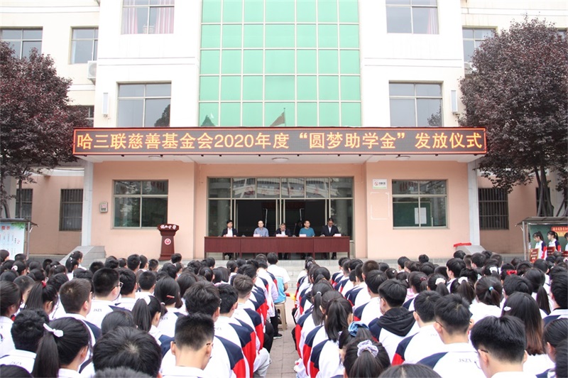 9月21日上午,哈三聯慈善基金會第三屆“圓夢助學金”發放儀式在山西省稷山縣稷山中學舉行。此次受資助學生共有13名,均為2020年考取一本院校品學兼優的貧困生,哈三聯慈善基金會每年將向受助學生資助學費、住宿費7000元,直至學生完成大學階段學業為止。哈三聯慈善基金會理事秦劍濤、副秘書長王勇,稷山中學校長王宇,副校長陳永明、閆俊東等校方領導出席儀式為受助學生頒發助學金,稷山中學全體師生參加儀式。