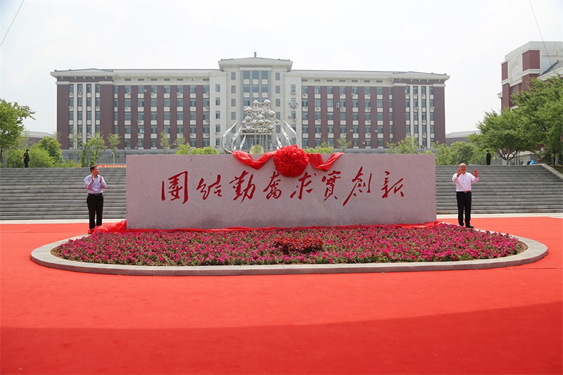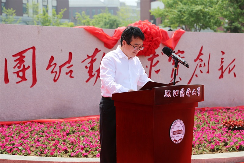 沈陽藥科大學校黨委書記徐鳳翔、哈三聯(lián)董事長兼總經(jīng)理秦劍飛為校訓石揭幕