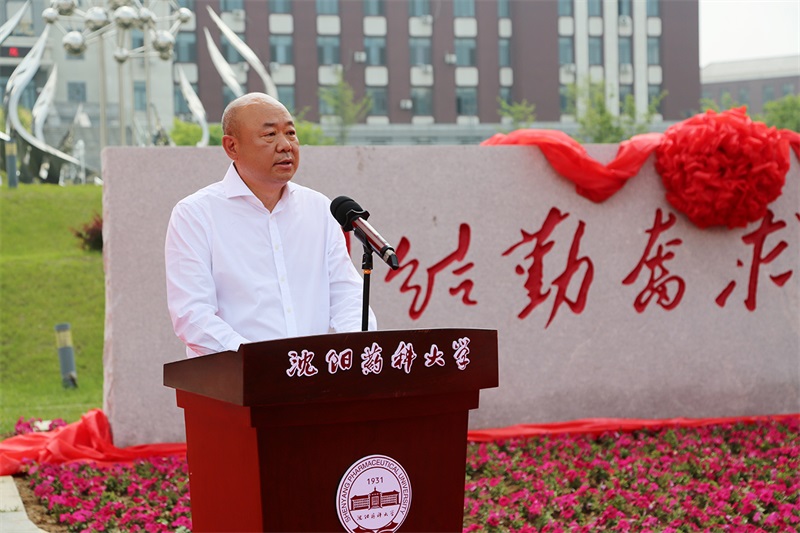 秦劍飛董事長為母校沈陽藥科大學捐贈校訓石
