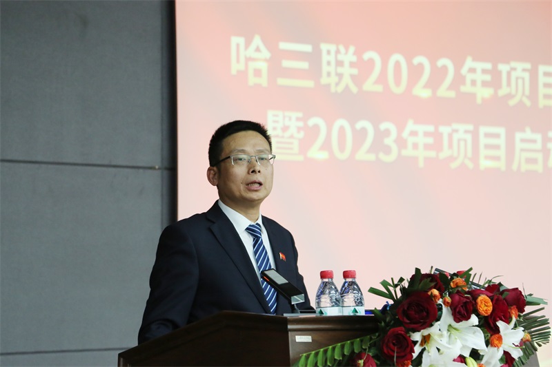 2月3日下午,哈三聯2022年項目總結暨2023年項目啟動會在禮德學術報告廳隆重召開。各中心、各事業部部長以上管理類人員參加會議,公司董事長兼總裁秦劍飛先生出席會議。