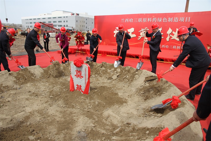 在蘭西縣委、縣政府各級領導,公司各相關部門以及相關建設單位的共同見證下,主禮嘉賓共同為項目揮鍬培土,標志著蘭西哈三聯原料藥綠色制造項目正式開工建設。