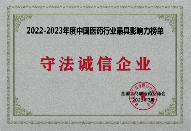 哈三聯榮獲“2022-2023年度中國醫藥行業守法誠信企業”