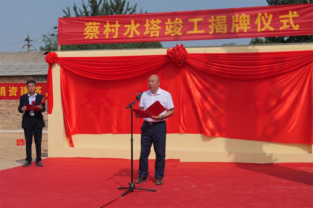 哈三聯董事長兼總裁秦劍飛代表哈三聯及哈三聯慈善基金會致辭。他強調,蔡村是養育他的土地,在外多年,他始終銘記回報家鄉的責任與使命。此次捐資興建水塔,不僅是為了讓鄉鄰百姓能有安全、穩定、潔凈的水源,更是為了表達在外創業者對家鄉的深情厚誼,希望未來家鄉能更加繁榮、和諧。