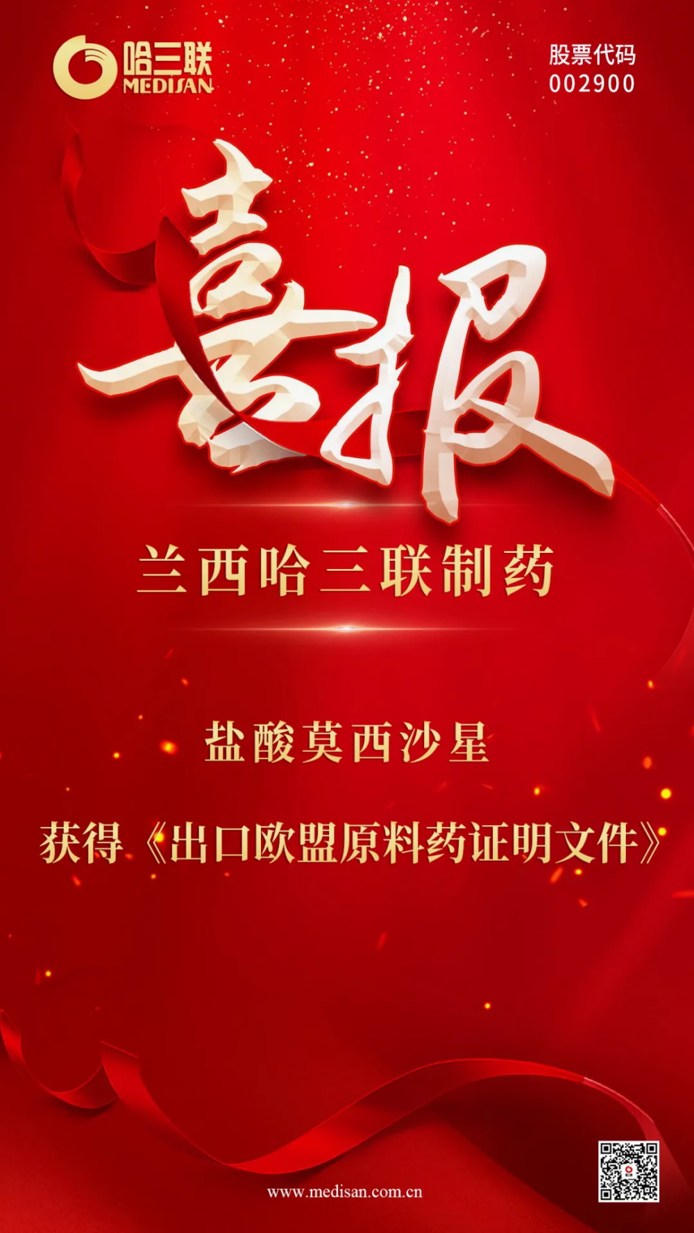 1月23日,哈三聯(lián)全資子公司蘭西哈三聯(lián)制藥生產(chǎn)的鹽酸莫西沙星獲黑龍江省藥品監(jiān)督管理局正式簽發(fā)的《出口歐盟原料藥證明文件》,迎來公司原料藥國際化新突破,為進一步拓展歐洲市場、深化國際合作提供有力保障。