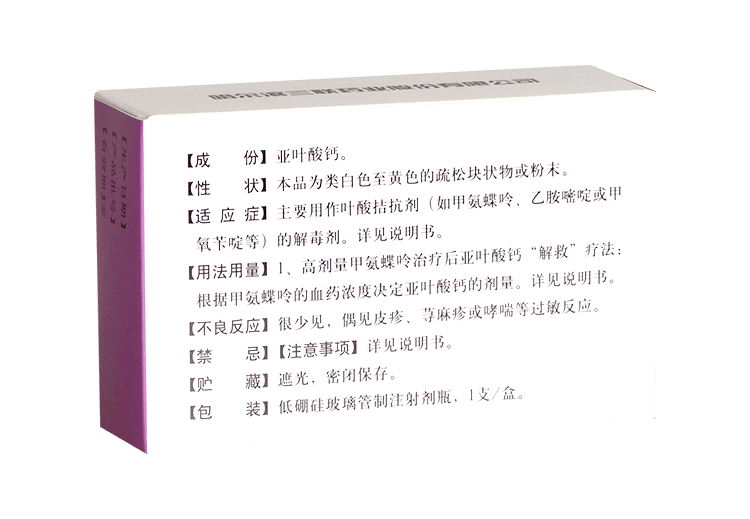 | 【藥品名稱】 | 注射用亞葉酸鈣 |