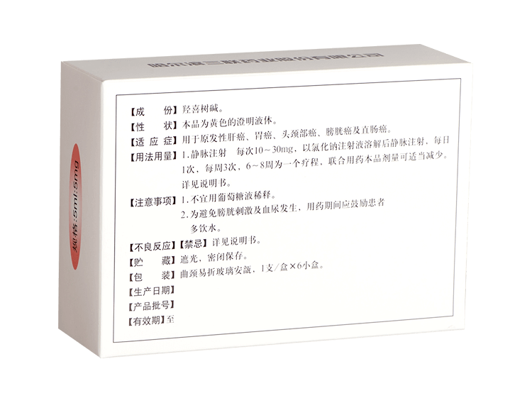 | 【藥品名稱】 | 羥喜樹堿注射液 |