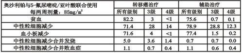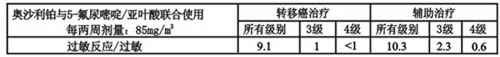 奧沙利鉑與5-氟尿嘧啶/亞葉酸聯合使用發生各級別毒性的患者百分率。