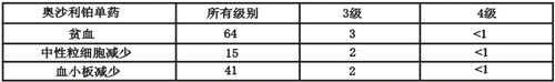 奧沙利鉑單藥(130mg/m2每3周重復)發生各級別毒性的患者百分率。